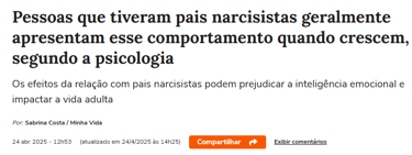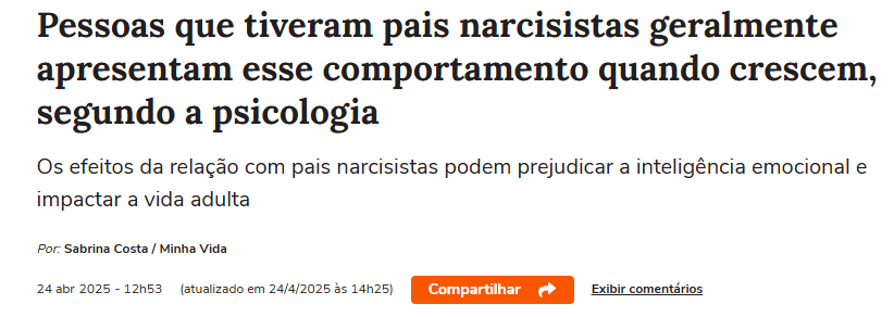 ✅ Quer que seu filho saiba se posicionar diante do pai narcisista.